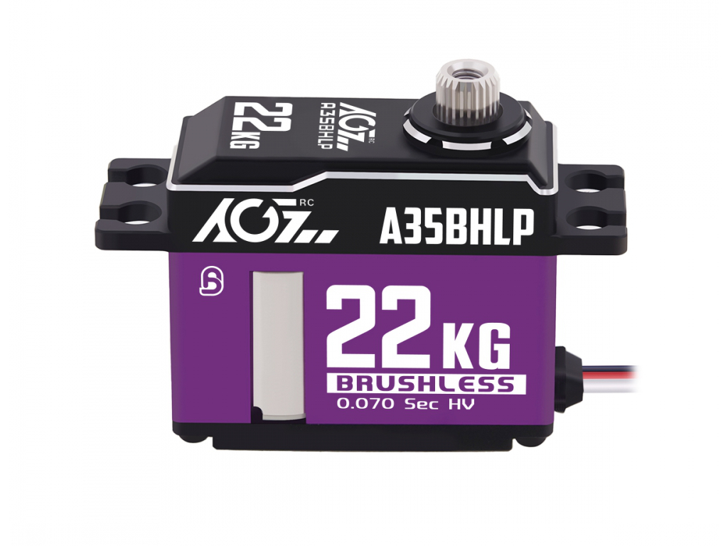 Servocomando brushless midi ad alte prestazioni programmabile AGF-RC A35BHLP e case interamente in alluminio fresato ed alimentazione da 4,8V a 8,4V. L'A35BHLP ha una coppia di 22kg*cm a 8,4V ed una velocità di 0,07 60°/sec ed un treno ingranaggi in Acciaio. Grazie ad un elettronica basata su un potente microprocessore i servi AGF sono programmabili tramite interfaccia USB con funzioni fondamentali quali la protezione al sovraccarico, la corsa utile magari per applicazioni come carrelli retrattili di alianti, centraggio e sensibilità utile quando si utilizzano più servocomandi sulla stessa parte mobile per ottimizzare gli assorbimenti.